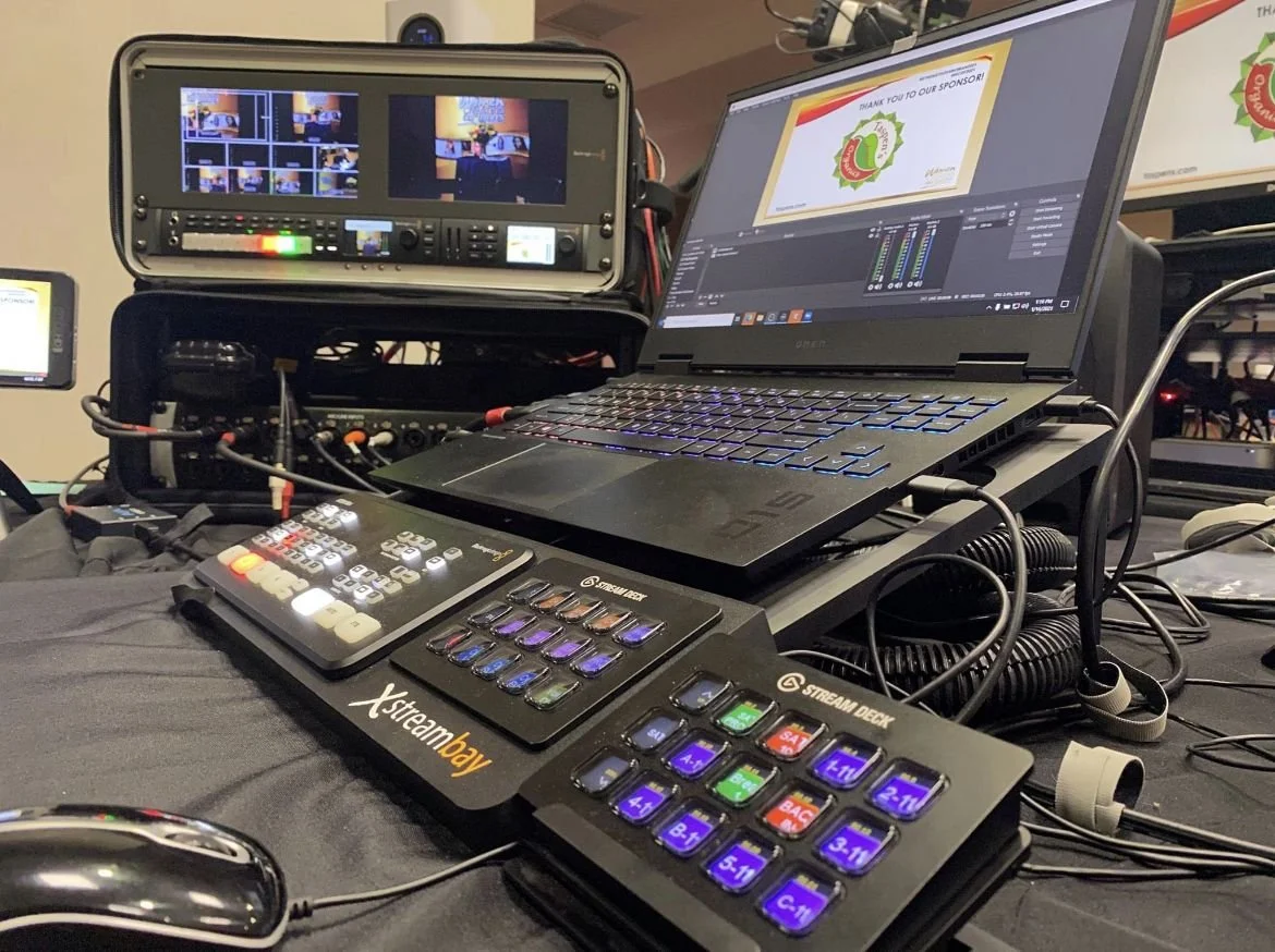 "Complete turn-key AV integration for a 200 to 2000 seat corporate auditorium. Features include a laser projector and LEDs Screens , integrated conferencing microphones, and a custom control system for one-touch operation."